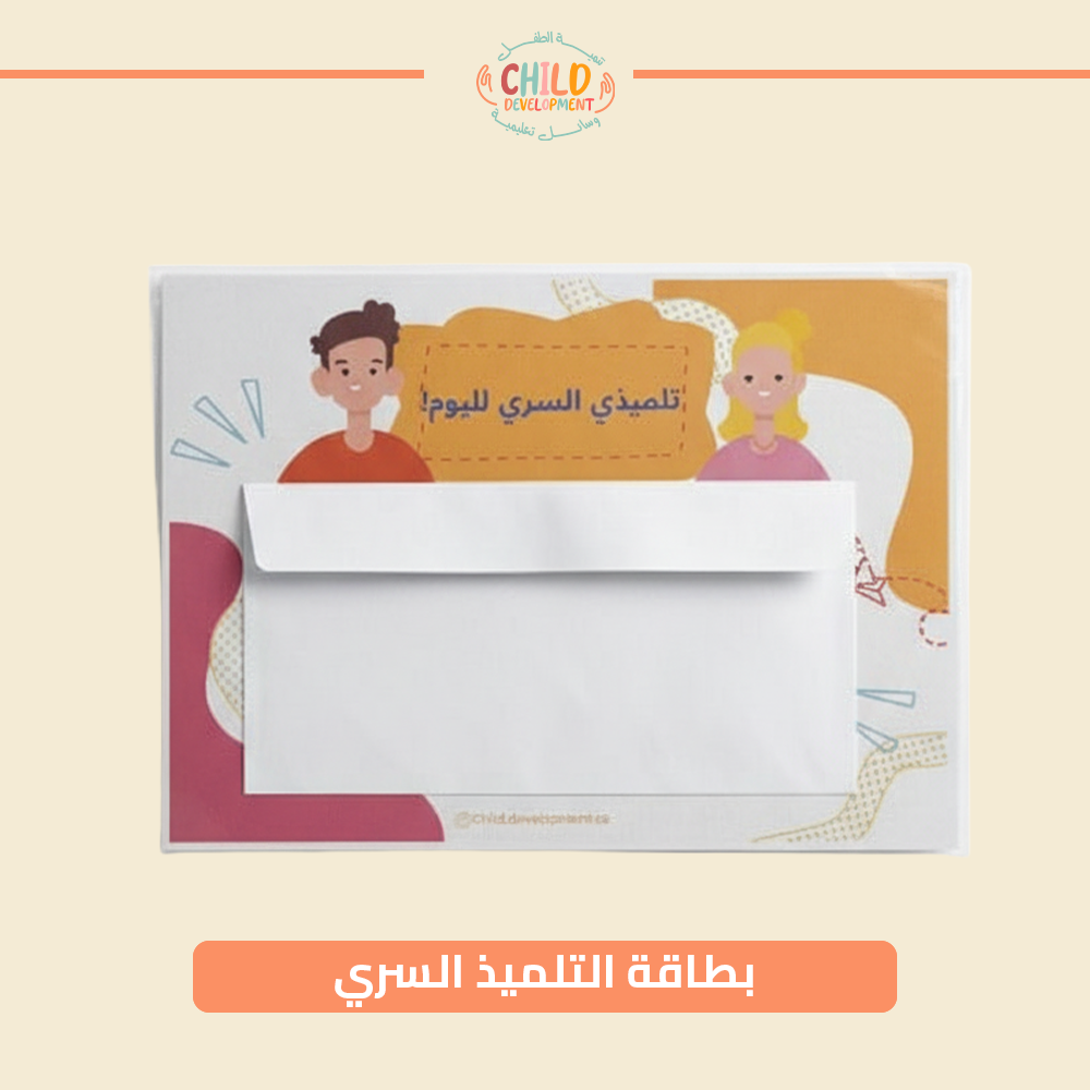 - تخبر المعلمة الطلاب في بداية الدرس أنه سوف يكون بداخل الظرف اسم وسوف تعلن عنه في نهاية الحصة
